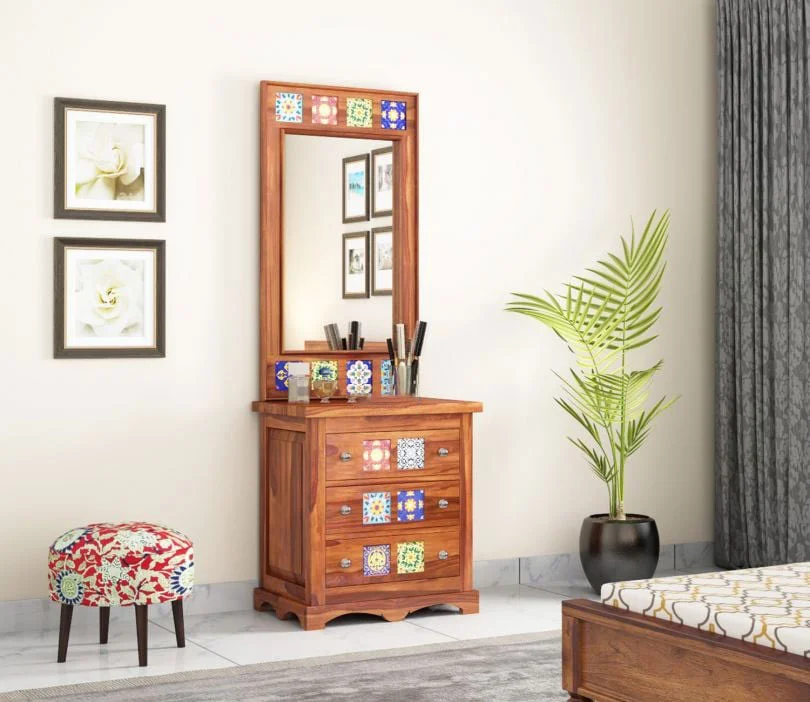 Elevate your bedroom décor with our exquisite Sheesham Wood Dressing Table. Crafted from high-quality Sheesham wood, this dressing table exudes timeless elegance and offers both functionality and style.