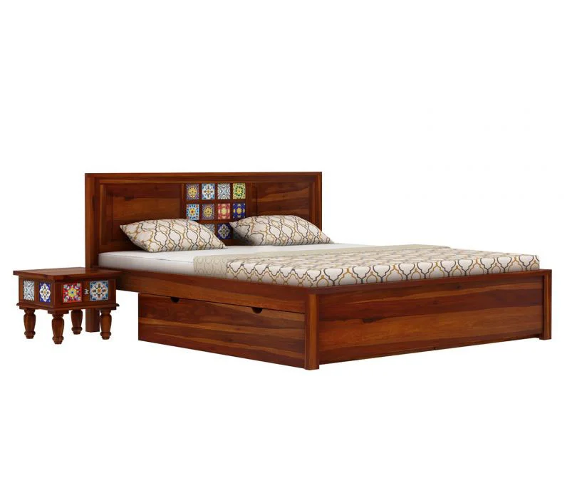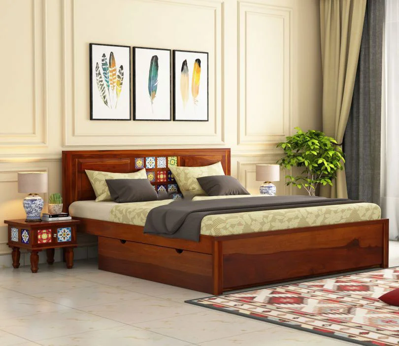 The Lumen Sheesham Wood Bed is sculpted from solid Sheesham wood, highlighting rich wood grain and offering practical storage options without compromising style. Pairs beautifully with wood or neutral-toned furnishings.